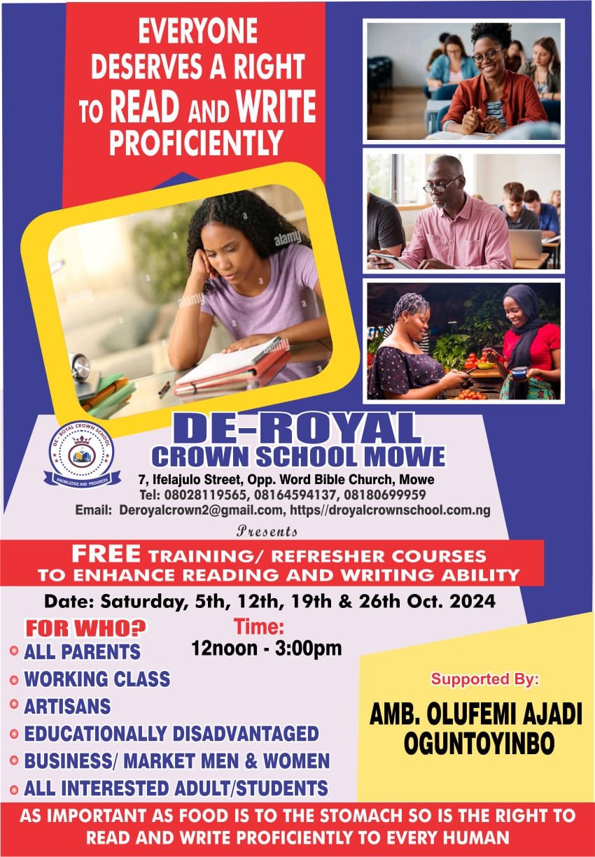 De-Royal Crown School have classes for JS1 - JS3