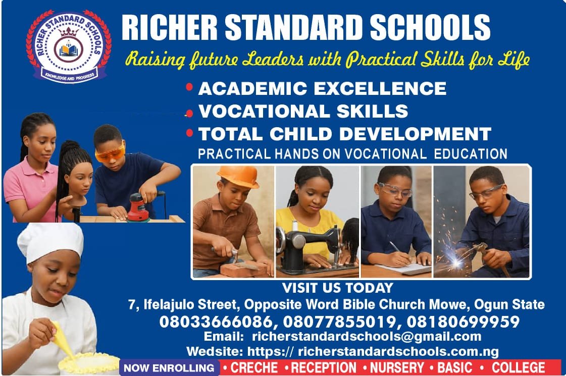 Richer Standard Schools is a premier educational institution located in the heart of Mowe, Ogun State. We offer a comprehensive and well-rounded education from Crèche to Junior College, fostering academic…